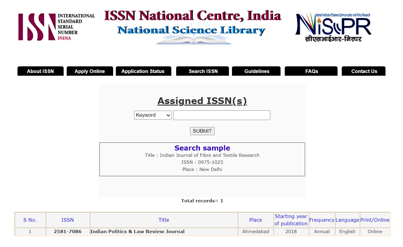 Indian Politics & Law Review (ISSN: 2581-7086)